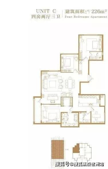 226平米:4房3厅3卫(1梯1户)