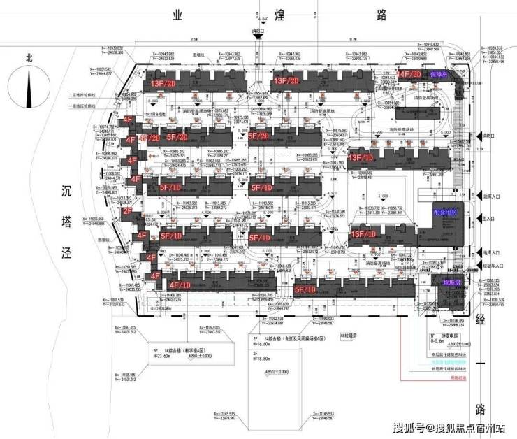 根据设计方案显示,项目拟建 4幢总高13F的小高层,10幢2-5F别墅以及相关的配套建筑。