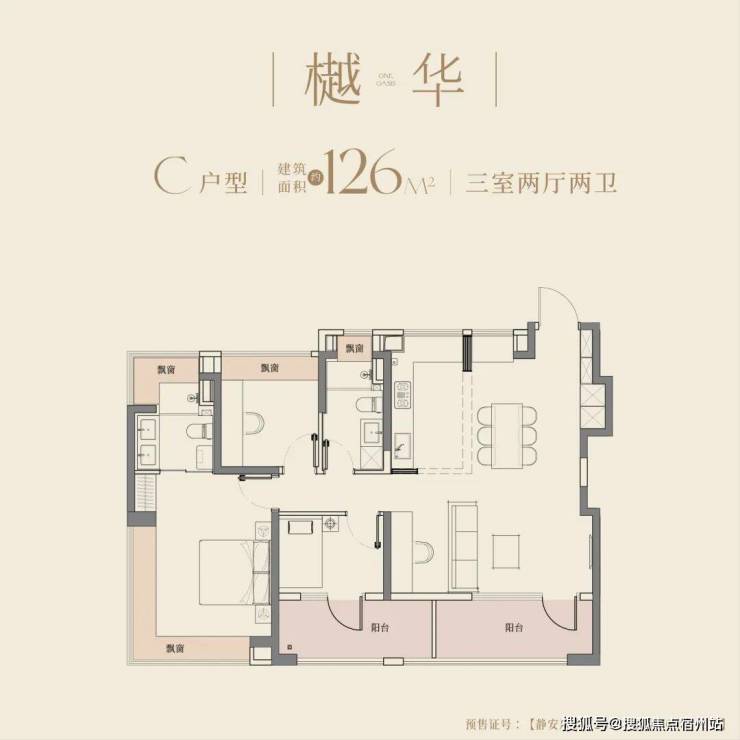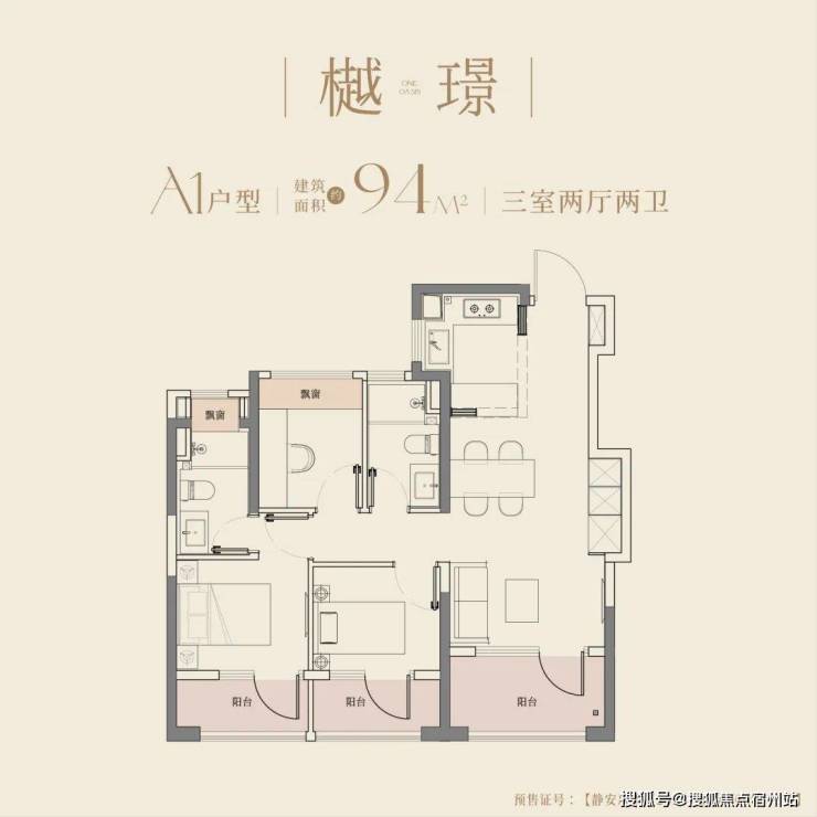 建面约94㎡户型,即做到了三阳台的配置,方正户型格局,大开间尺度,全室飘窗设计,可做多元改造,如储物空间或拓展室内面积,为生活打开更多想象空间。