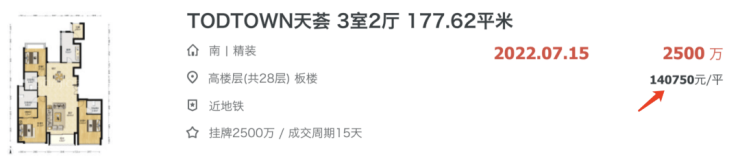 以同为闵行主城的TODTOWN天荟为例,在其周边优质次新普遍挂牌价格仅在10w左右的当下,其二手成交价竟已经高达约13w元/㎡!