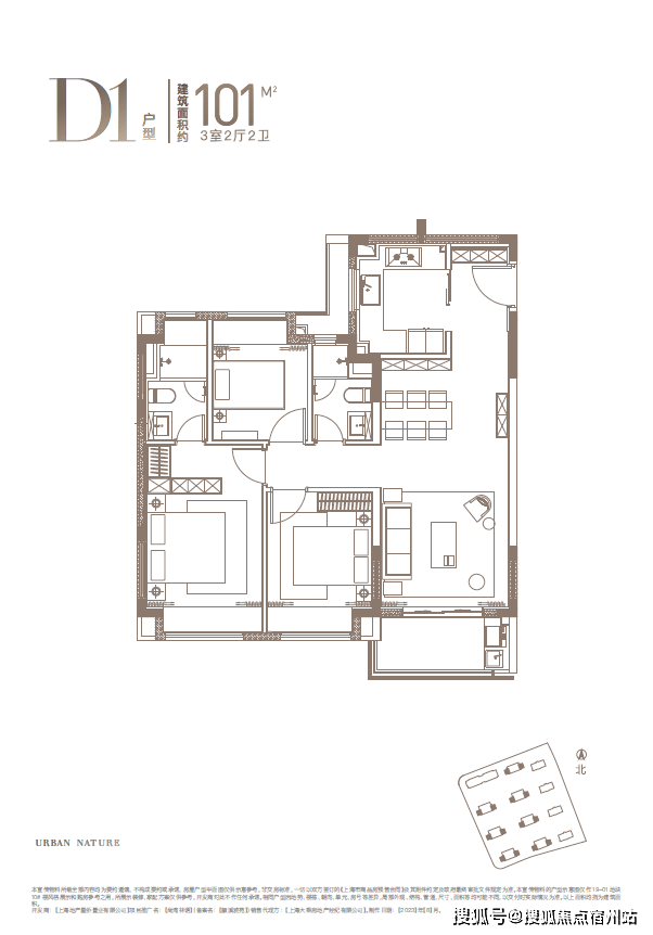 项目还有一个建面约101㎡边套户型,和100㎡设计大同小异