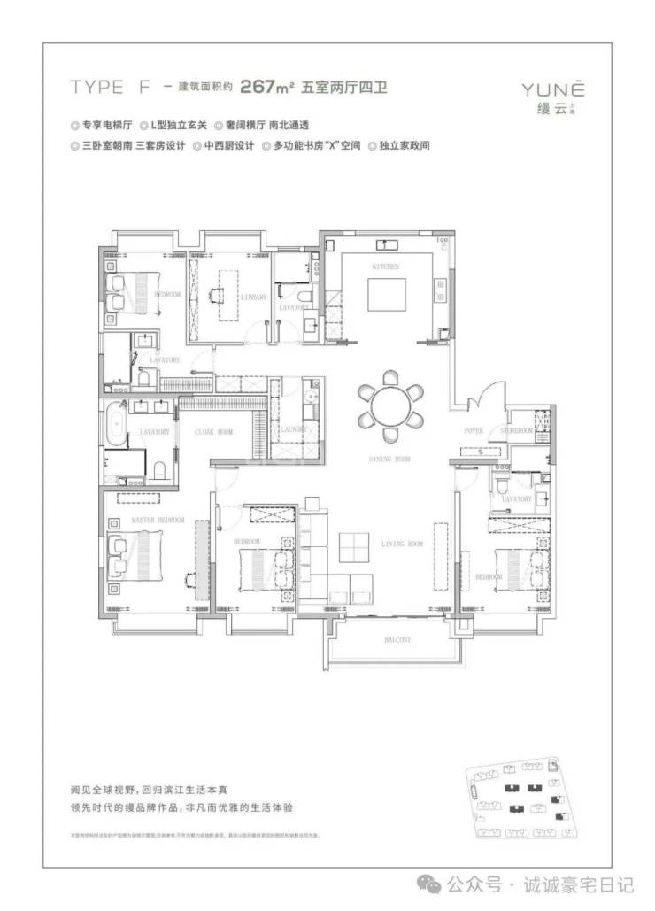 与此同时,还同步推出269㎡一线滨江五房实景样板,总价在3000+万的豪宅产品中,在市场上是非常稀缺,三套房设计,专享电梯厅,多功能书房X空间等等,让269户型未面市,就受到一线滨江客户的青睐。