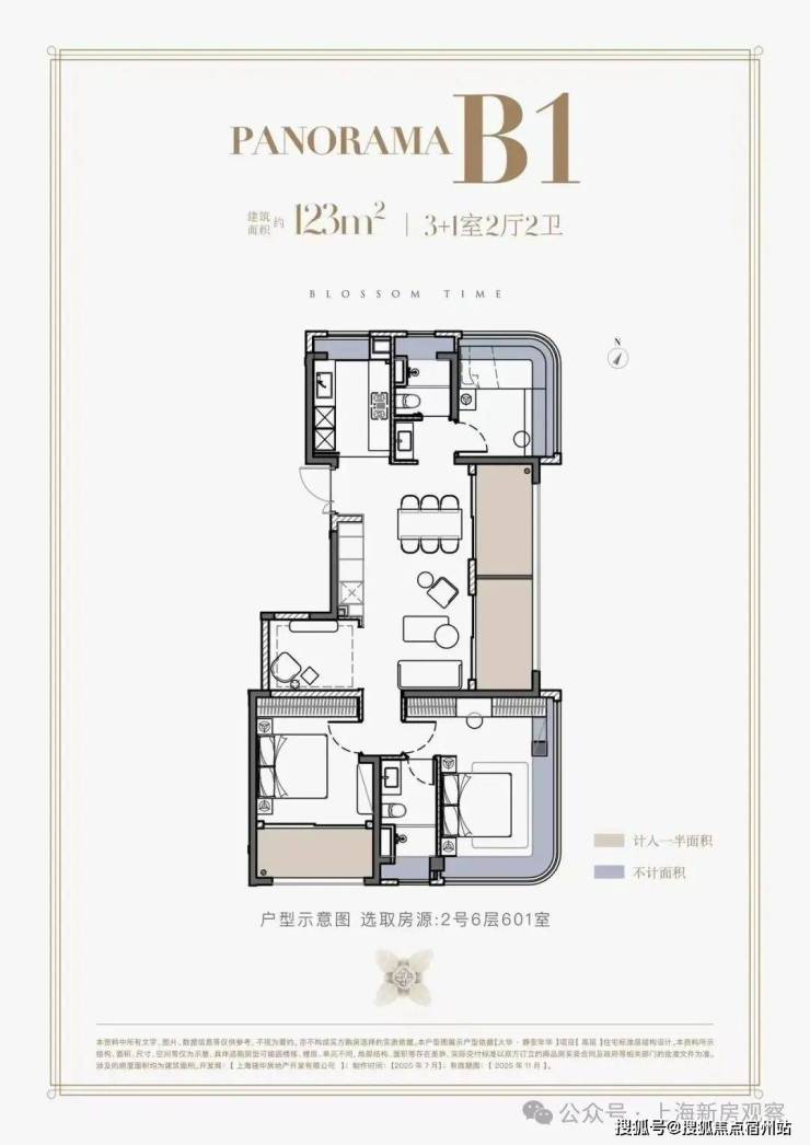123㎡户型配合约6.6米大横厅、270°飘窗,真正实现“全景舱视野”,媲美140㎡+尺度: