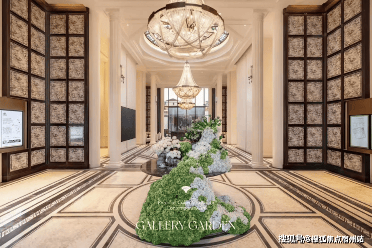 奢材精工:门庭外立面采用弧形米色石材+典藏级老虎玉大理石,下沉式庭院选用土耳其进口老虎玉,耗时60天手工打磨;迎宾树木选用树龄超60年的紫薇,细节处尽显奢华与用心。