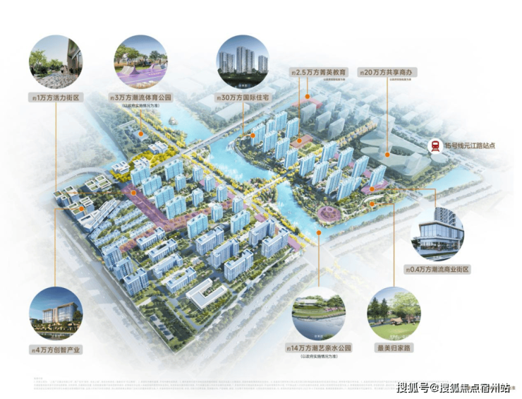 这座百万方滨水TOD大城,以15号线元江路地铁站点为核,从莲花南路到都会路整合片区,涵盖7大业态,约百万方大体量: