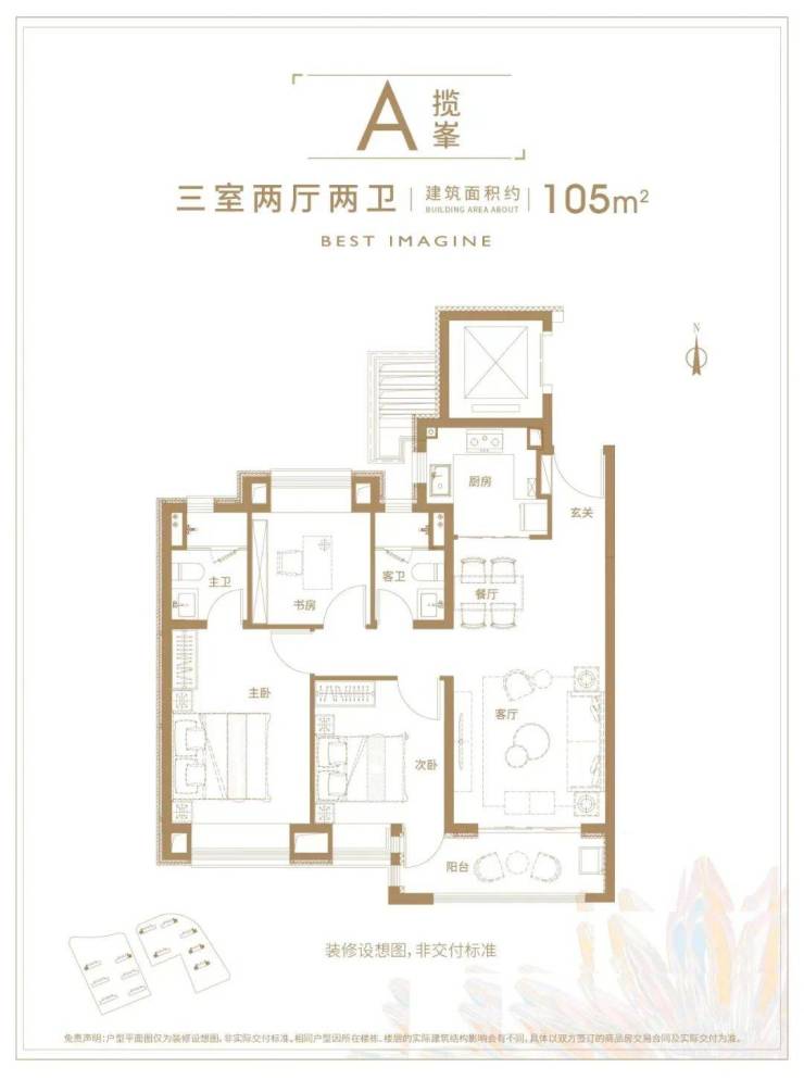 除此之外,项目还有建面约125㎡宽绰三房户型: