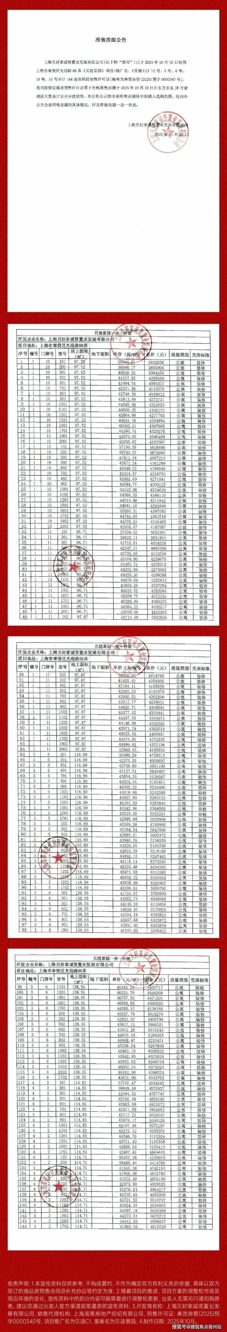 最新消息,一房一价表发布!奉贤新城「贝涟C1」10月18号开始认购!将推建面约97-139㎡三房四房!