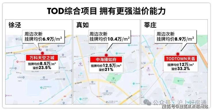 相比普通楼盘, TOD综合项目本身也有较强的溢价能力 ,莘庄天荟、万科天空之城等TOD项目都已给出有说服力的结论。
