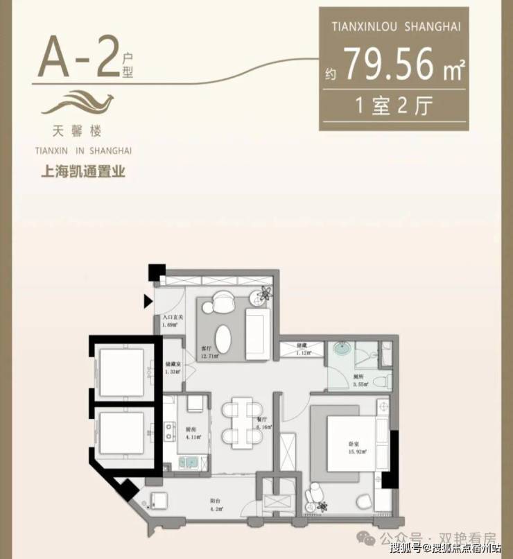 ● B户型(79.56㎡):一室两厅一卫,简约高效,满足都市新锐的品质刚需。