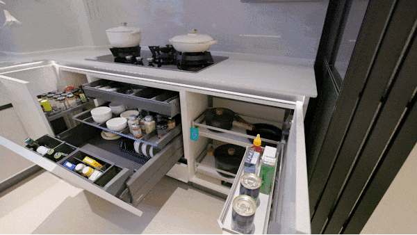 多功能水槽龙头轻松切换用水模式, 滨特尔前置过滤器+末端直饮水+中央净软水机,全屋净水呵护家人饮水健康,还有 线形凉霸默默为烹饪者送来清凉。所有展示橱柜皆为交付标准,包括 上柜、下柜、拉篮、随心抽,以及特别定制的飘窗水槽与水槽柜——每一处细节,都为真实的生活而考虑。