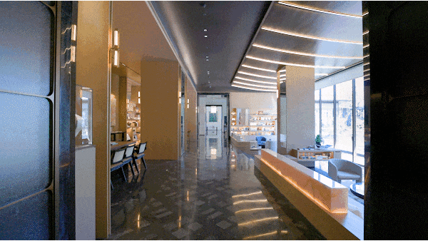 汲取张江科学之门金色塔冠的灵感,化身为一座现代语境下的“玲珑宝盒” 。 将科技感与东方美学融于一体,这不仅是一扇门,更是一段序曲——仿佛整座城市的繁华都在为您加冕。