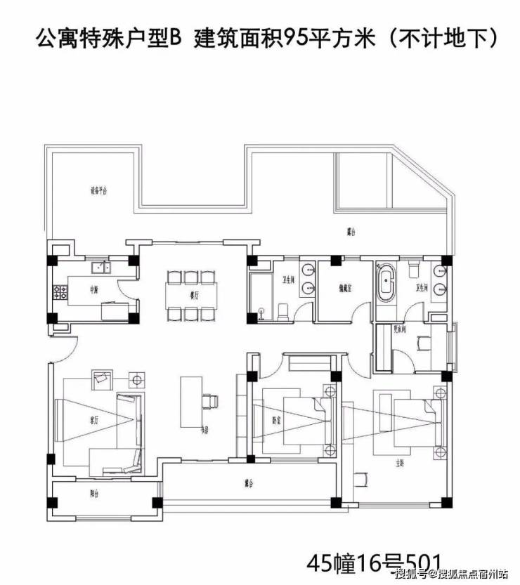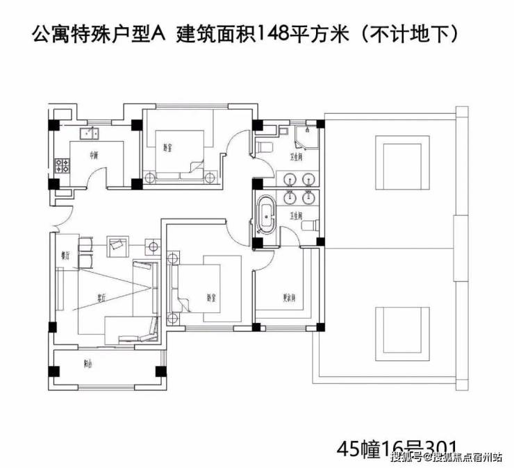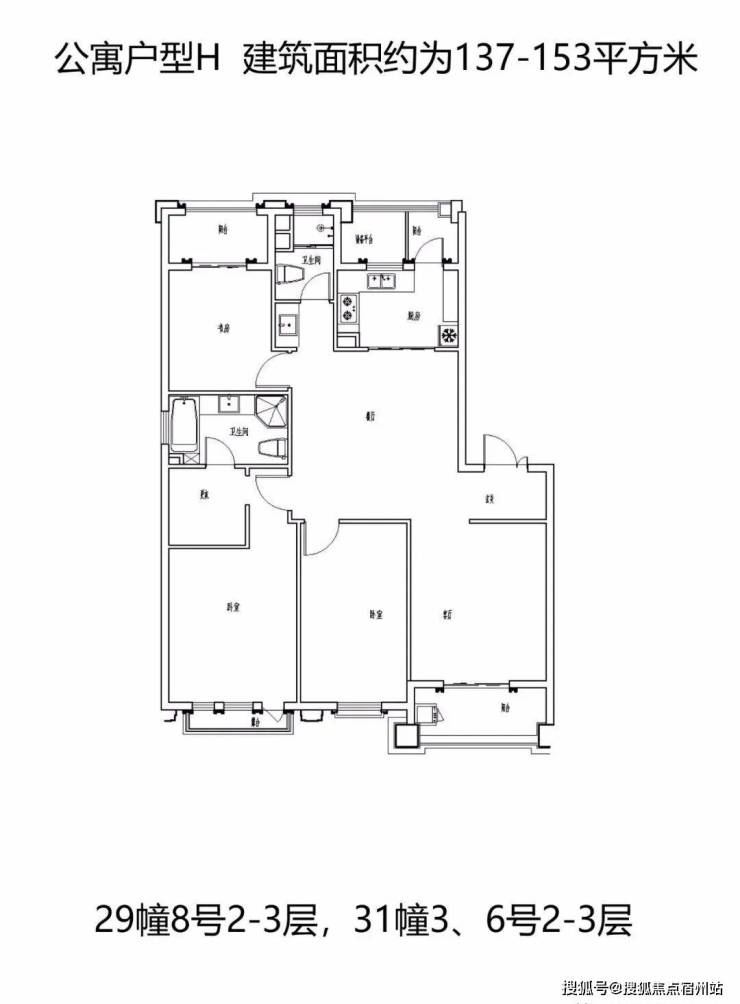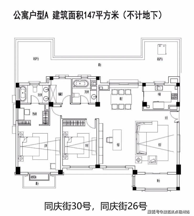 四套房设置,主卧配衣帽间+化妆间+X可变空间