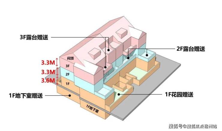 3、从户型设计来看,一楼户型附赠超大地下室及双层庭院;二楼户型附赠星空露台;三楼附赠露台及其他空间;户型实得率最大可以超过200%!平均也能达到约150%左右!