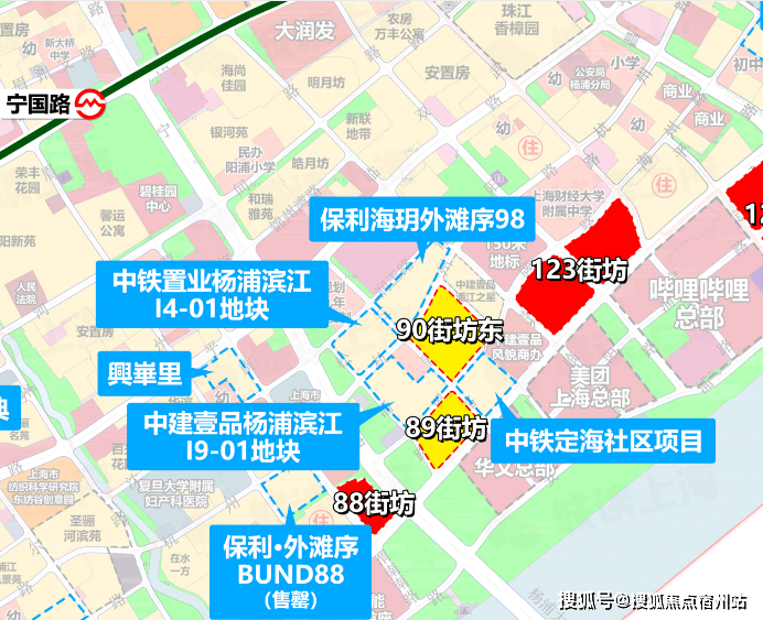 项目地处杨浦滨江大桥东侧“九宫格”内,紧邻内环,与在建的华文总部及美团综合体仅一步之遥。