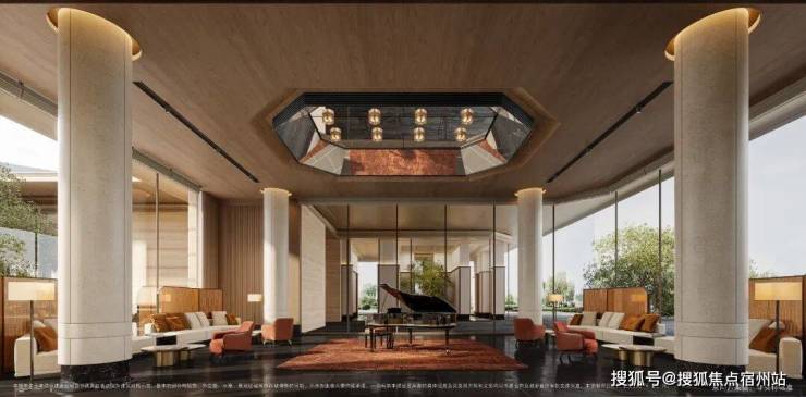 项目还采用 全域架空设计,一层全部架空,层高达约4.5-6.6米。 这一设计带来的好处显而易见: