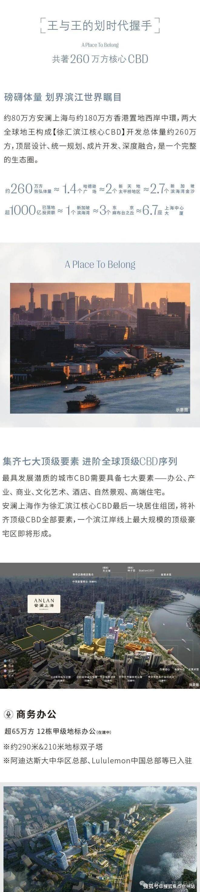 而安澜上海正处于徐汇滨江内环内的核心地段,是徐汇滨江最早开发,规划能级最高的核心江岸段。这里坐拥约1.4公里黄金滨江岸线,与西岸金融城一道,聚集总部办公、前沿产业、重奢商业、文化艺术、滨江生态、高奢酒店、高端居住等世界级城市资源内容,是徐汇滨江核心CBD的所在,更是助推徐汇滨江进阶全球水岸的核心能量地。