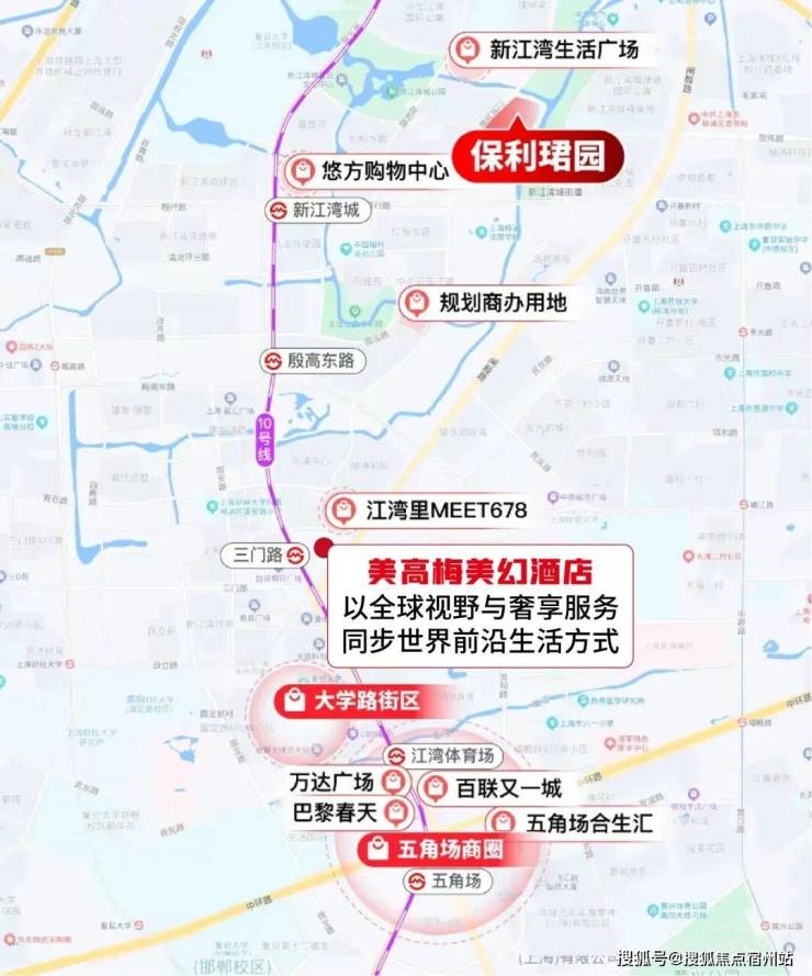项目自带约1.8万㎡社区商业街区,规划精品超市、高端餐饮、美容SPA等业态,步行200米即达新江湾生活广场,生鲜超市、便利店、药店一应俱全,日常烟火气触手可及;3公里范围内覆盖五角场万达广场、合生汇、悠方购物公园三大高端商业体,汇聚国际大牌、米其林餐厅、IMAX影院、亲子乐园,无论是朋友聚餐、家庭购物,还是商务宴请,都无需远行,10分钟尽享主城繁华。