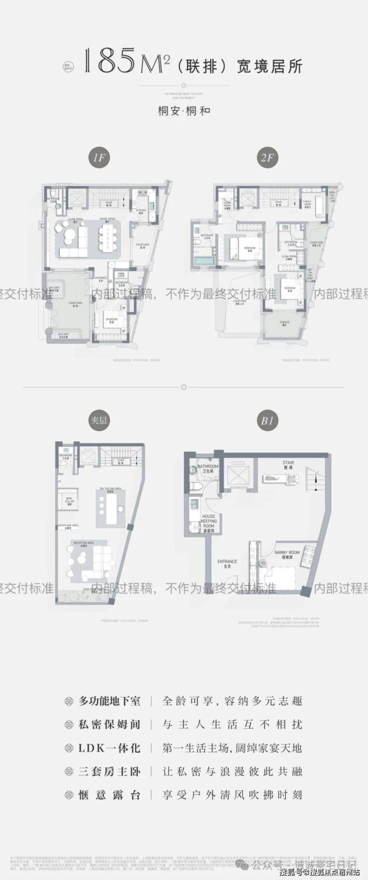 桐安里由招商操刀建设,整体布局为地上2-3层+阁楼+花园+地下1层(挑高6.6米)、可分隔成两层,物业使用的是招商最高级的积余物业(地上18元/地下9元),项目整体将于2026年底交付。