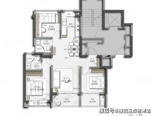 114㎡三房两厅两卫(主力入门款) :三开间朝南,南向双阳台(半赠送面积),主卧套间带独立卫浴 + 飘窗,次卧、书房均带飘窗,客餐厅一体化,南北通透,总价 815-850 万,适合年轻改善家庭。