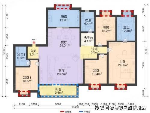 126㎡三房两厅两卫(品质改善款) :大横厅设计,客餐厅一体化,南向面宽超 12 米,三开间朝南,双阳台 + 全屋飘窗,主卧套间带独立卫浴 + 衣帽间,空间开阔,总价 900-950 万,适合三口之家或二胎家庭。