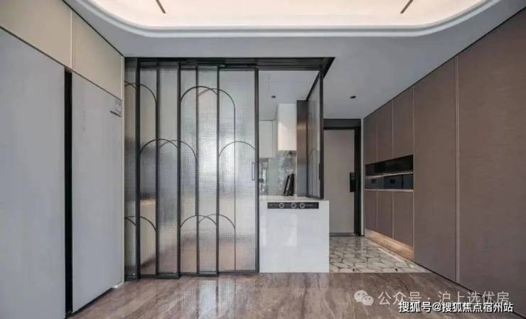 项目的厨房采用 金属框+艺术玻璃移门,推拉丝滑颜值颇高!