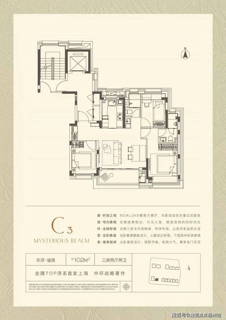 102㎡户型将实用性做到极致,类一梯一户设计增加了实用面积,并且拥有罕见的3.5开间朝南+约5米大面宽客厅,要比大多数同面积段产品体验感更强。