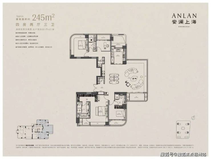 而安澜上海打造罕见的大面宽、短进深格局,四面宽让采光面最大化铺开。更难得的是三房朝南,让每个家庭成员都能平等享有阳光与舒适。