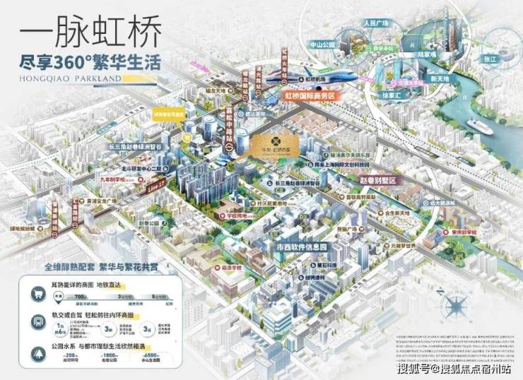 更值得一提的是, 17号线不仅是通勤线,更是串联起青浦未来的“黄金发展轴”。它东起徐泾北斗产业基地,西至金泽华为研发基地,而中部核心节点,正是项目所在的赵巷市西软件信息园。 这条轴线承载的,是青浦乃至整个大虹桥的科创未来。