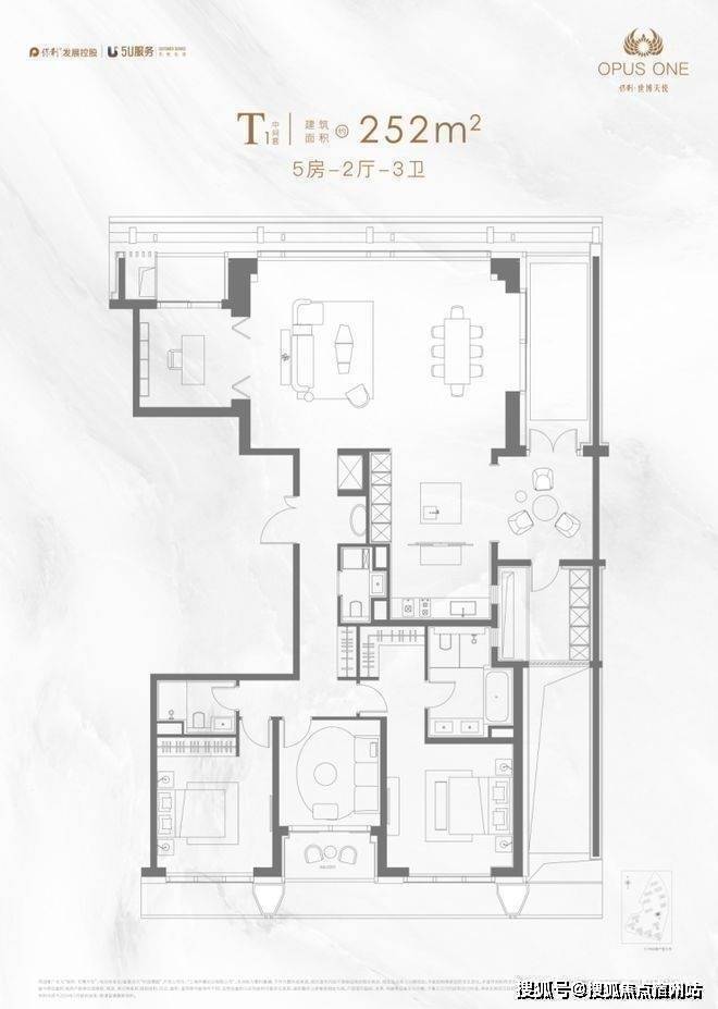 主力户型:190-252㎡(3-5房),层高3.35米,得房率79%。