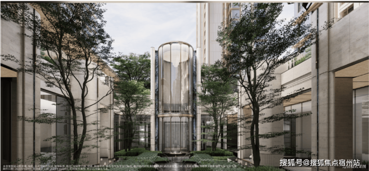 中央叠水空间,一次自然与叠水的相得益彰,灵感源自汇金湖:徐汇记忆里的成长映象,汇聚徐汇一代人的记忆与想象。