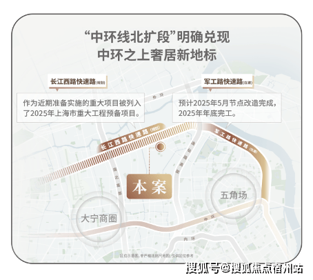 中环线北扩段明确兑现:上海招商序官方售楼处电话:400-1185-086√√√【已认证】军工路快速路25年开工,长江西路快速路规划26年开工,快速链通城心,随着中环北抬的政策落地,淞南将正式进入中环时间。未来经逸仙高架,进入南北高架、内环高架、中环高架,可快速链通南北上海。