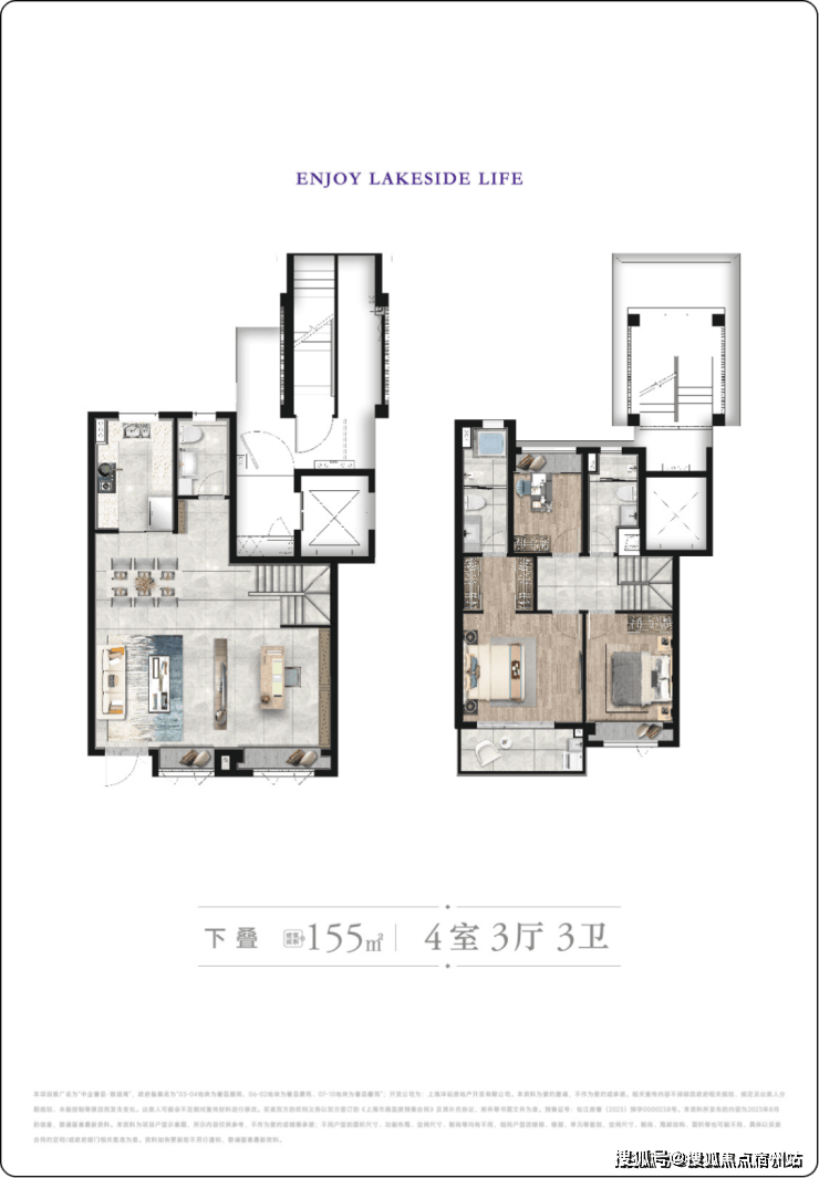 户内楼面高度不一致,错开之处有楼梯联系。但没有完全分为两层。(适合大面积住宅,小户型会显得局促)