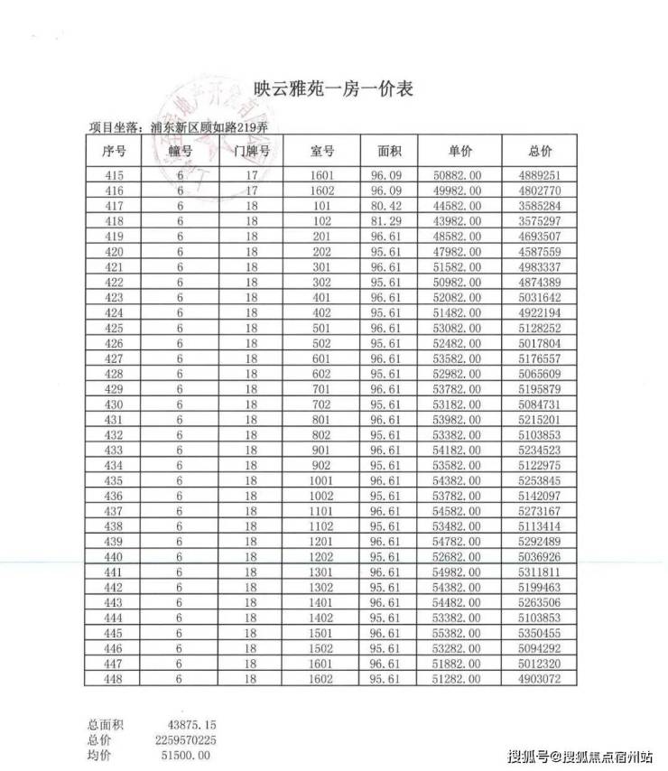 项目一房一价表▼