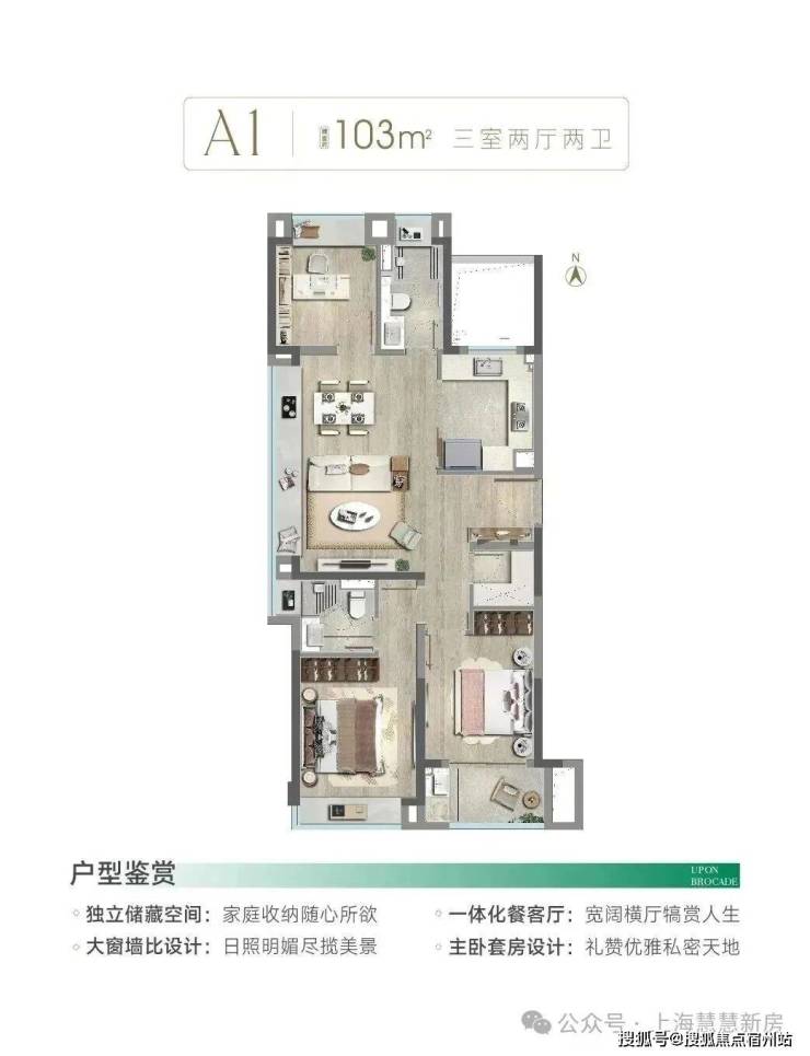 加推的3#,两面近邻天然河道水系,占据一线滨水视野,东侧河滨公园与社区公园内景形成生态对景,还原萦水而居的江南水乡居住体验。且端户的103㎡户型,边厅设计有效引入滨水瞰璟、荡漾诗意,“在家犹如度假”的设计理念,居住体验再升级。
