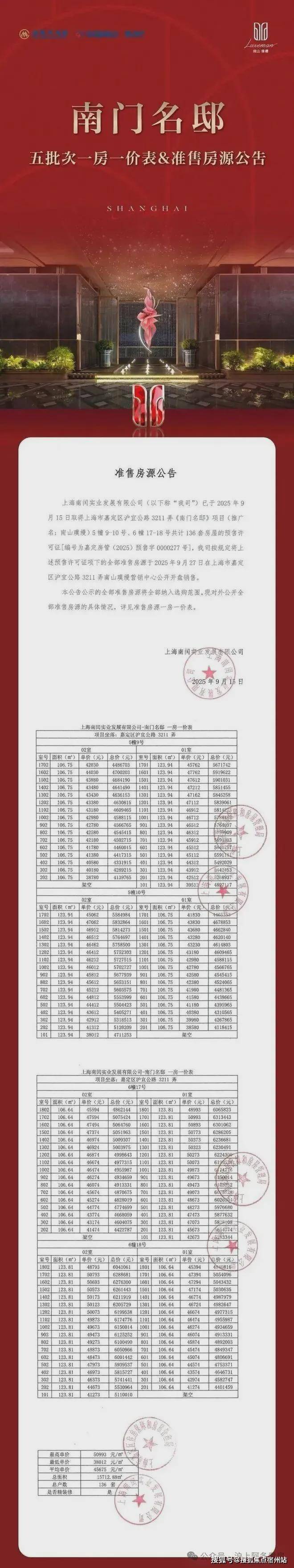 最新消息:南山璞缦项目五期加推105-123㎡3房户型,共136套房源,过会均价均价45675元/㎡;另前期少量105-198㎡3-4房在售,总价365万起,可直接认购!作为嘉定新城封面豪宅产品,项目备受购房者的关注!