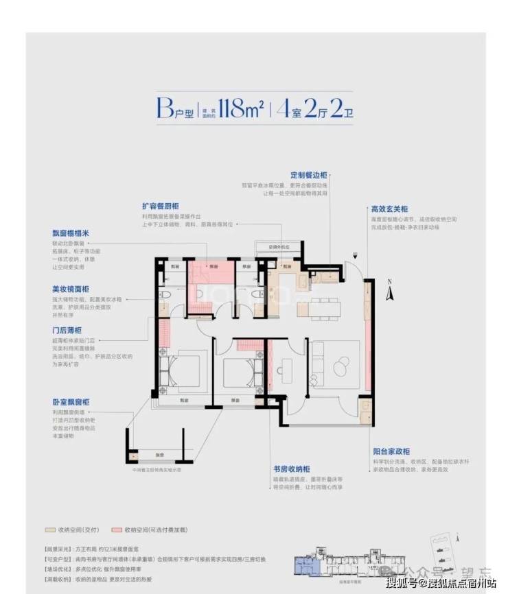【建面118㎡4居】433-521万,4室2厅2卫, 南朝向,楼栋分布于3幢/4幢