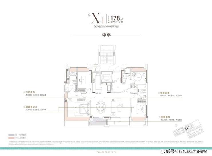 项目的中叠 四开间朝南,超大IMAX的采光面 ,妥妥市区豪宅大平层的尺度感。