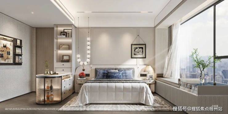 主卧套房尤其吸睛!以 270°转角飘窗 打破传统空间边界,配合双台盆、大尺度衣帽间等顶配细节,将奢华居住体验浓缩于每一寸空间。飘窗台延伸出的休憩区与窗外景观形成对话,让私密时光也充满诗意。