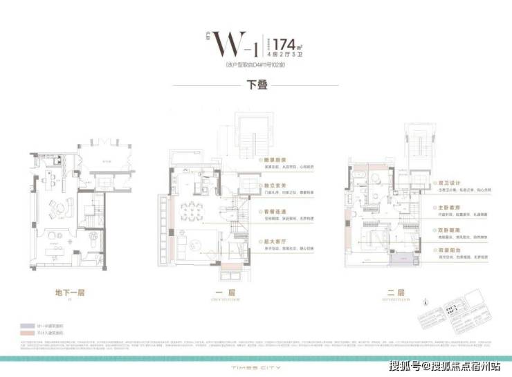 目前市面上常规叠墅,常因单层面积局促导致居住体验受限,往往刚迈开步便需上下楼梯。相比之下,时代之城下叠 产品 单层空间舒展的布局 真正诠 释了改善型住宅的精髓!