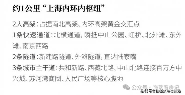 轨交轨道交通1号线(中山北站)距离本项目直线距离100米!一站上海火车站,四站人民广场,五站新天地!且四站内可换成2、3、4、8、12、13号线几乎可达上海各处!自驾:自驾3公里可达人民广场