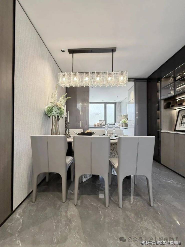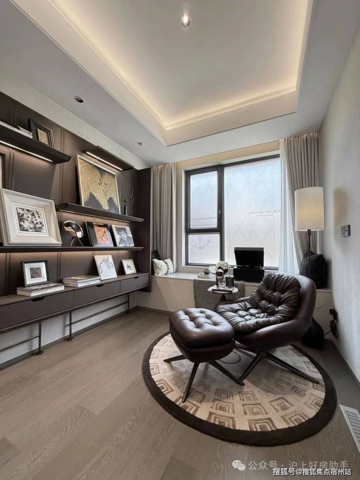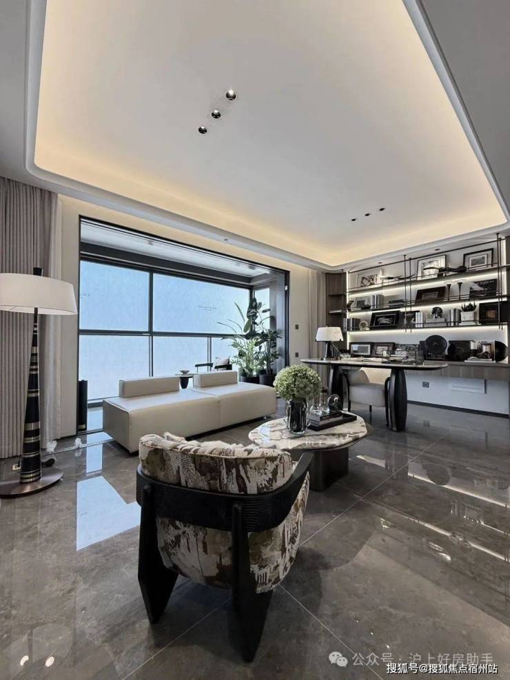 「江湾金茂府」在选材与工艺上尽显奢华,皮革、金属、木材与灯光丝滑连接,形成高度统一的整体。