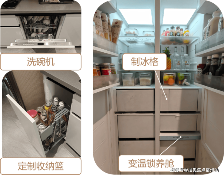 colmo冰箱全部地嵌入墙面,内部还有制冰格和变温锁养舱功能,这细节简直无敌了!