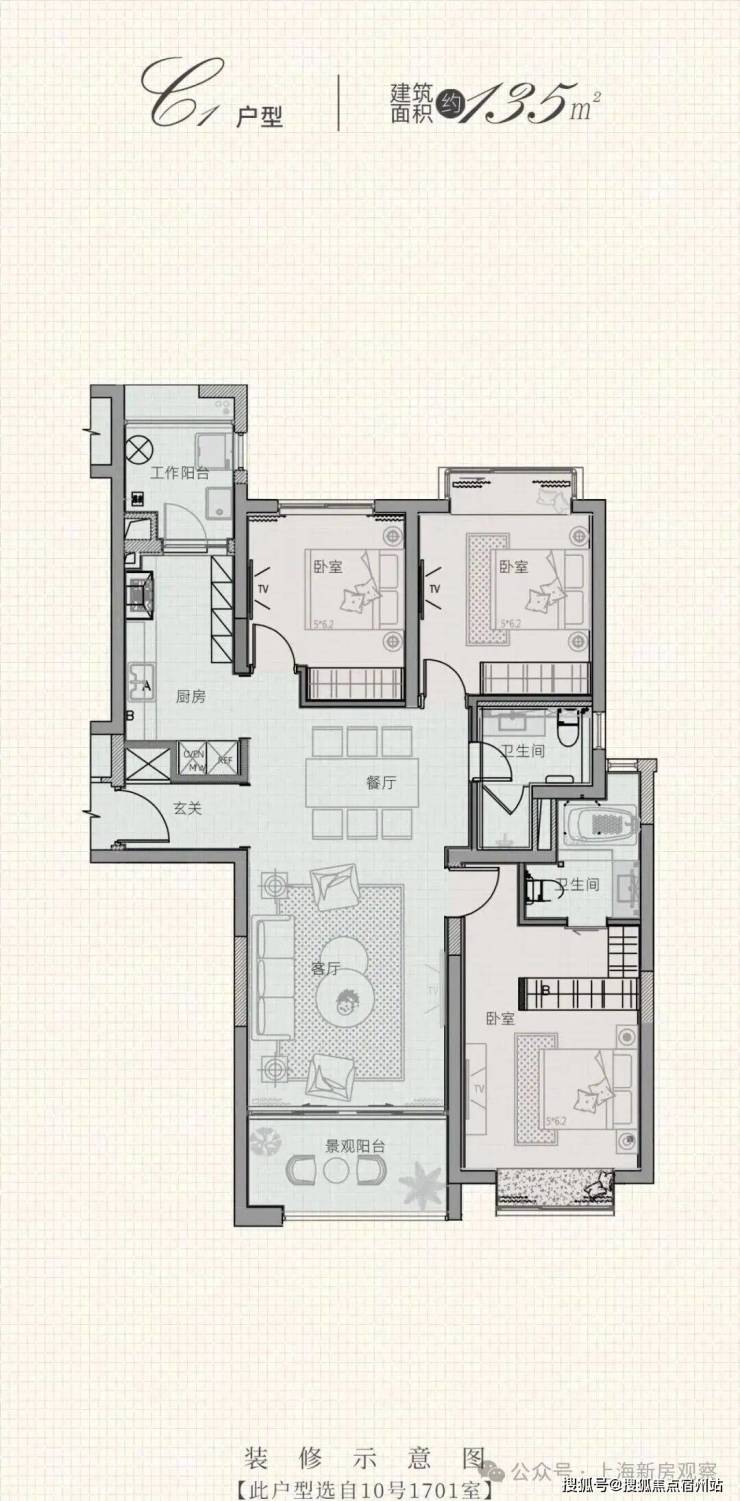 【135平】3室2厅2卫、总价约1580-1600万