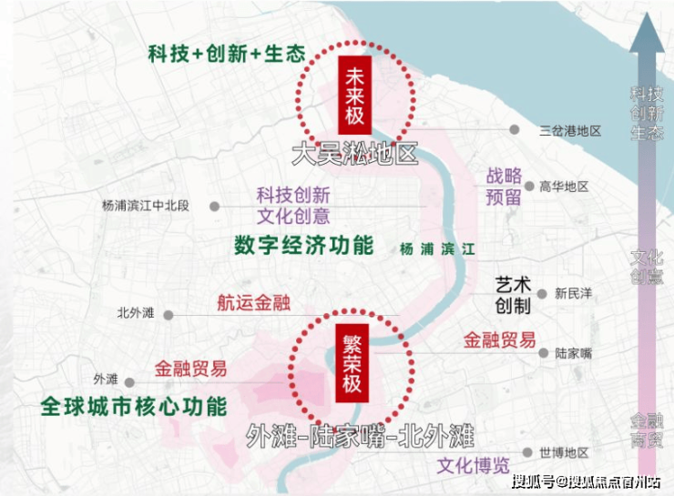 项目所在的 大吴淞创新城对标上海“繁荣极”黄金三角(外滩+陆家嘴+北外滩),大吴淞千亿科创战略区以“三江交汇、上海之门”为定位,聚焦双碳金融、邮轮经济、智造创新三大核心产业,屹立上海北部门户,扼要江海交汇,驱动区域高质量发展的澎湃引擎。 未来,北上海土地的价值将呈爆发式增长!