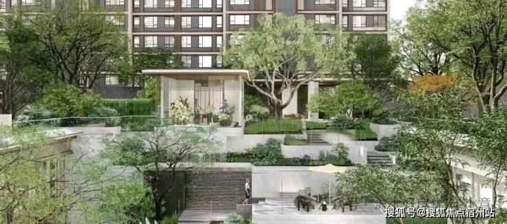 还有项目首创的立体台地式自然庭院,跌级水景、漫行水畔,搭配观景平台、下沉式卡座;