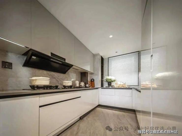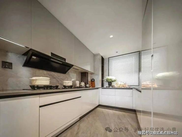 再来看看厨房部分,U型厨房操作动线流畅,厨房全超一线高端品牌,博世燃气灶、油烟机、洗碗机三件套;摩恩水槽、抽拉式水龙头都为大家配齐。