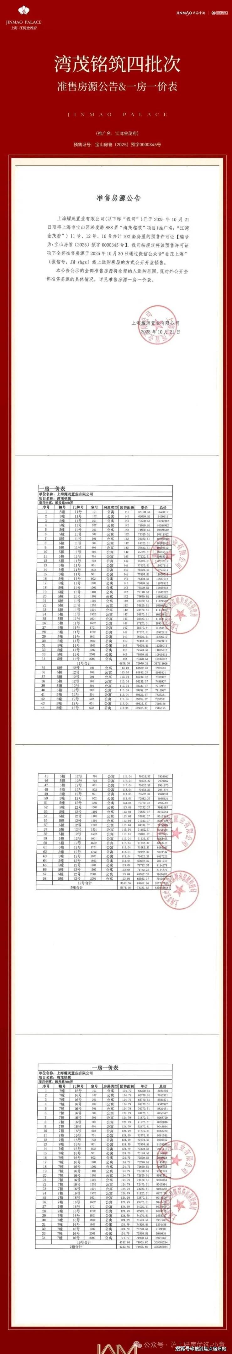 参考江湾金茂府|四批次准售房源公告&一房一价表