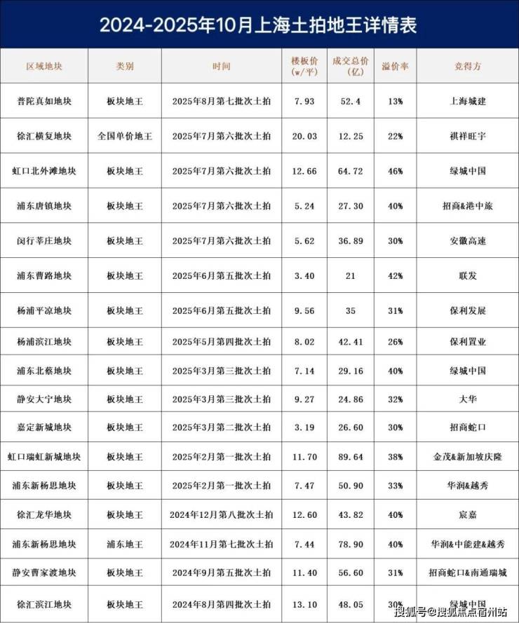 以上海为例,从2024年下半年开始,截至到今年10月,上海已经诞生了 12个地王,成绩斐然。
