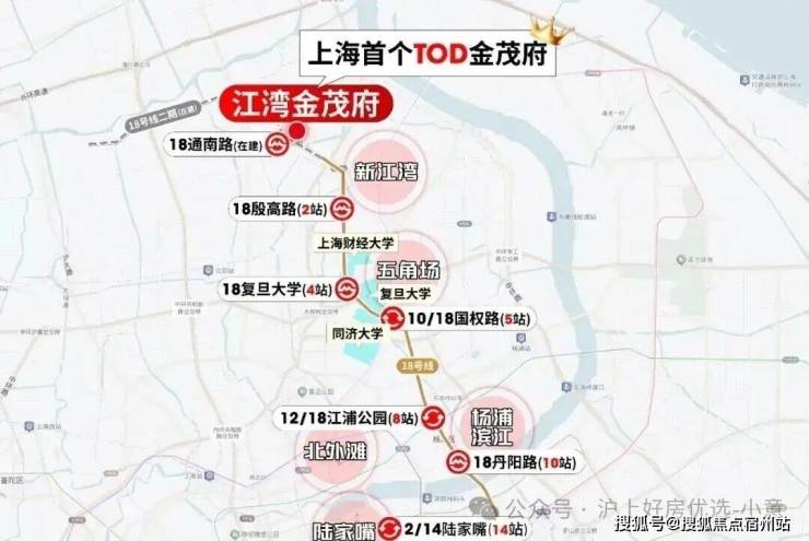江湾金茂府是上海第一个TOD金茂府项目,且家门口地铁站 轨交18号线二期(在建,预计年底通车)与 3号线双轨交汇!