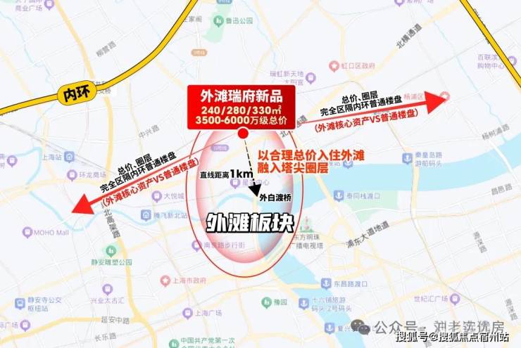 而外滩瑞府核心竞争力,在于其对“外滩核心圈”的精准占位(直线外滩约1公里)。